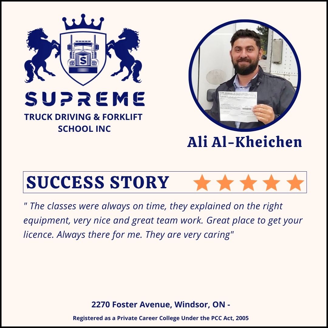 Supreme Truck Driving & Forklift School Inc. is Registered as a career college under the Ontario Career Colleges Act, 2005. This truck driving school is providing students with high standard of in-class understanding and realistic driving skills.